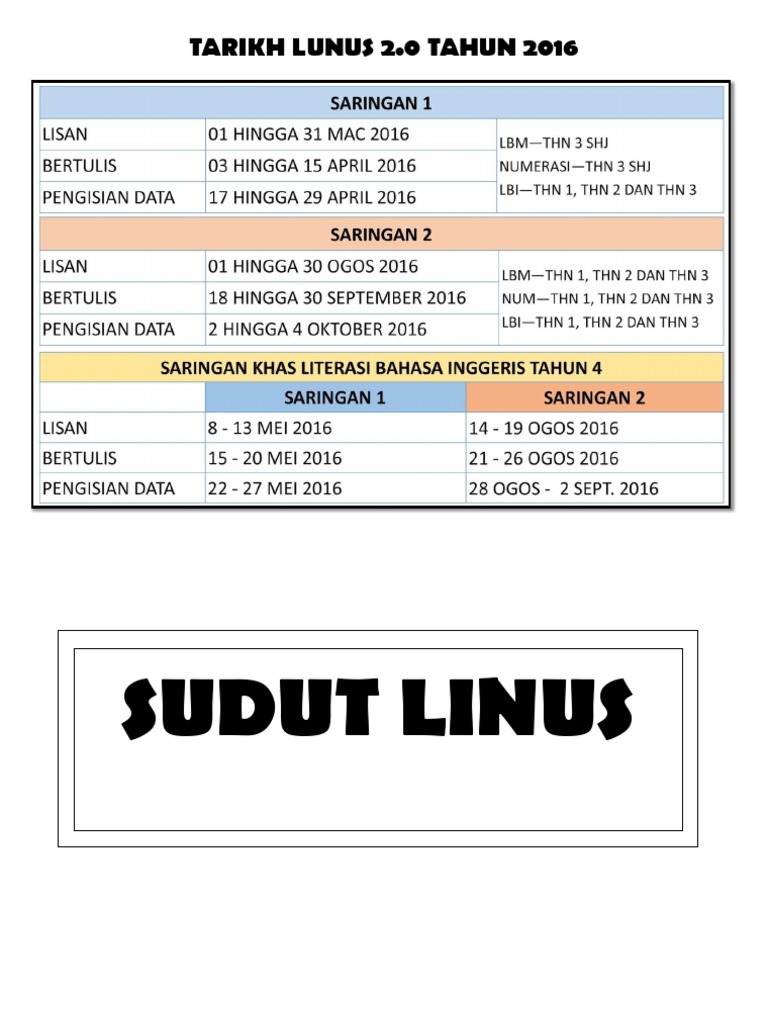 Tahun 1, tahun 2, tahun 3 dan tahun 4. 28 jun 2010, pegawai lpm,jpn kelantan dan ppd kuala krai telah membuat pemantauan pelaksanaan saringan 2 linus di sk banggol guchil kuala krai. 7th jan 2020 kamihakamis bm pemulihan, instrument saringan lbm, linus bm, panduan pemulihan, saringan membaca, saringan menulis leave a comment. Luqman irfan salman a/l ismail nur zuhayra aini nor adawiyah. Manual pentadbiran saringan 2 linus (bertulis).