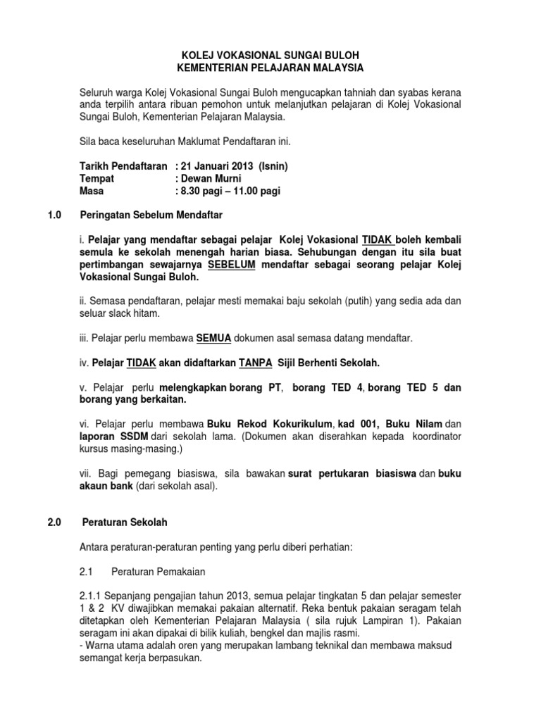 Temuduga Pengambilan Kolej Vokasional Sungai Buloh Facebook from lookaside.fbsbx.com Pada 2009, sekolah menengah teknik sungai buloh memiliki 414 pelajar lelaki dan 145 pelajar perempuan. The acronym in malay) east region 308 km. Sekolah vokasional atau kolej vokasional merupakan sekolah ataupun kolej yang menawarkan latihan kemahiran berbanding tawaran akademik. Bandar sri damansara pju 9 3.8 km. Kolej vokasional sungai petani 1. Berikut dikongsikan panduan langkah demi langkah bagaimana untuk memohon kemasukan ke kv secara online serta syarat kemasukan terkini. Kolej vokasional sungai buloh, sungai buloh. sm vokasional sungai buloh, selangor.